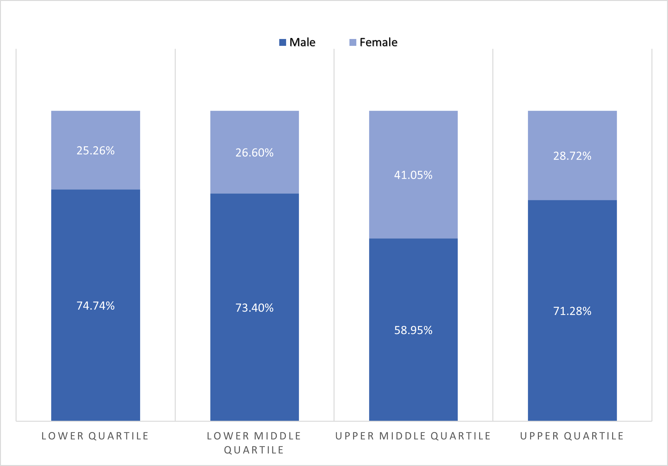 - The distribution of men and women in different roles across our organisation and the temporary employment market